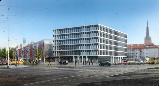 Wizualizacja budynku na terenie „Grzybka”