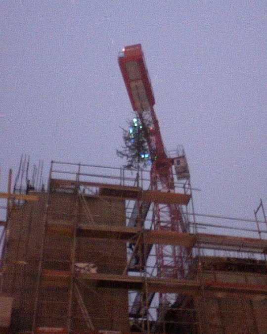w radio kolędy i piosenki świąteczne. Również na budowie Kaskady pojawił się akcent świąteczny