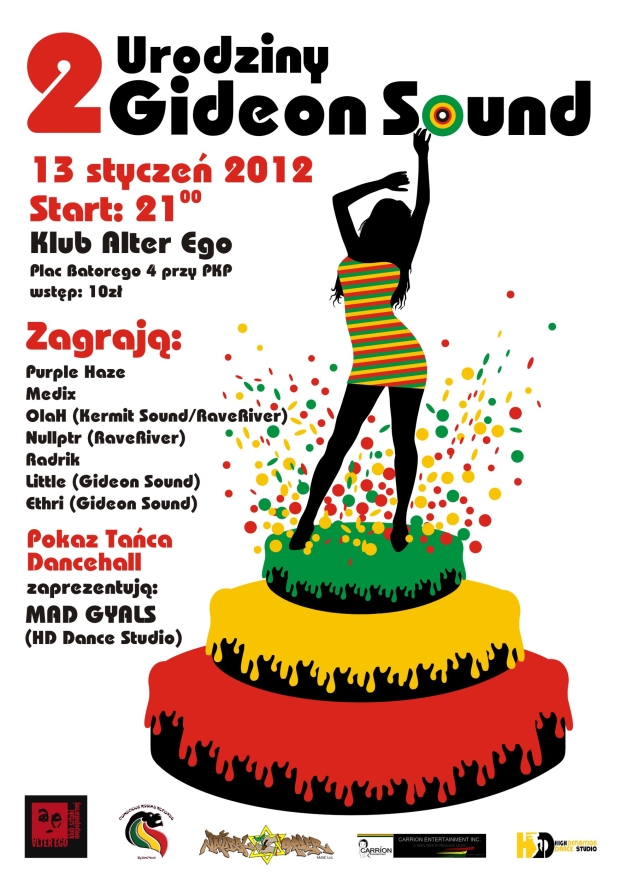 13 stycznia 2012 r. od godziny 21:00 w klubie Alter Ego odbędą się 2 urodziny Gideon Sound. Na imprezie będzie można znaleźć wszystko czego jamajska dusza zapragnie – z głośników polecą roots, dancehall, raggamuffin oraz ska.
