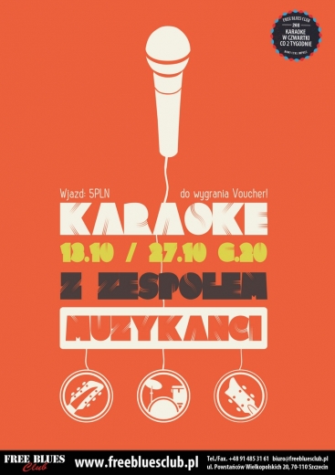 Co robisz w czwartkowy wieczór 13 października? Chciałbyś pośpiewać? Myślę, że warto zainteresować się imprezą „Karaoke z zespołem Muzykanci” w Free Blues Clubie. Jest to wyjątkowe karaoke, ponieważ muzykę będzie grał zespół Muzykanci na żywo.