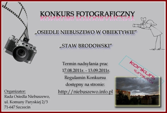 W ten dzień zobaczymy również najlepsze zdjęcia, które biorą udział w konkursie „Osiedle Niebuszewo w obiektywie” oraz „Staw Brodowski. Jeśli masz jakieś ciekawe zdjęcia, możesz je jeszcze wysłać (do wtorku, 13 września). Regulamin i szczegóły konkursu znajdziecie pod linkiem www.niebuszewo.info.pl