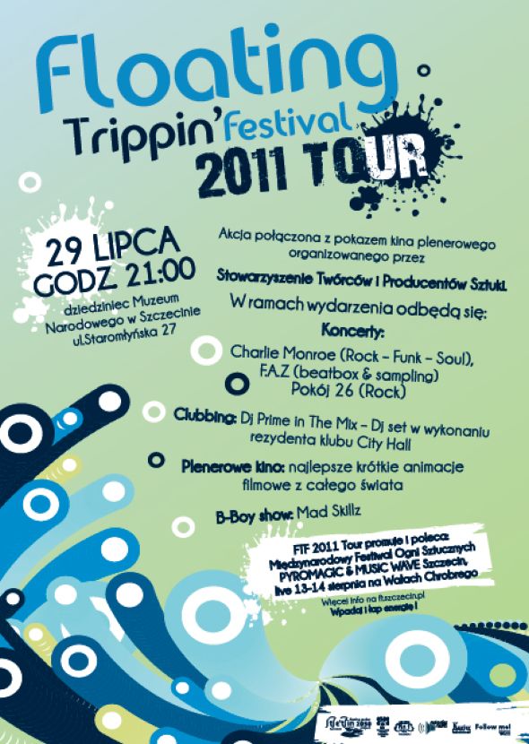 Już w najbliższy piątek 29 lipca 2011 roku na dziedzińcu Muzeum Narodowego przy ul. Staromłyńskiej 27 odbędzie się kolejna (piąta) odsłona Floating Trippin’ Festival 2011 Tour. Akcja na dziedzińcu będzie miała charakter muzyczno filmowy.