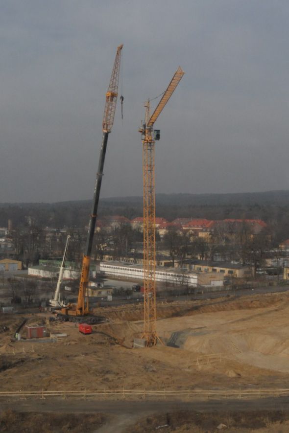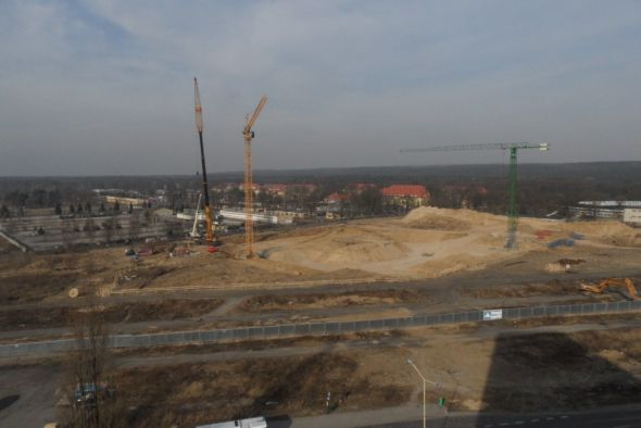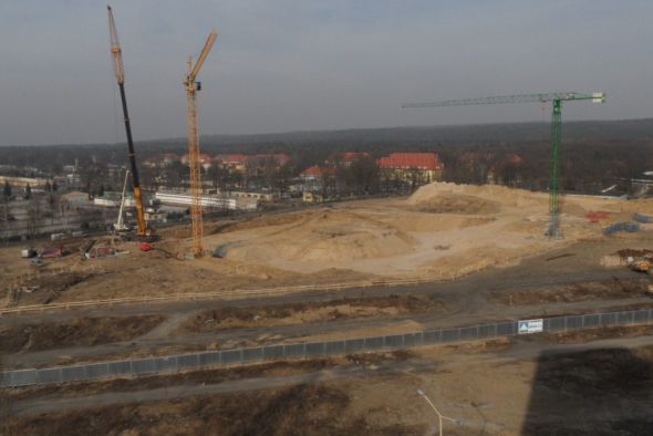 Zapraszam do obejrzenia aktualnych zdjęć z budowy hali widowiskowo-sportowej przy ulicy Szafera. Roboty idą pełną parą – na placu budowy stoją już dwa żurawie.