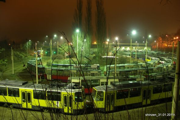 Kilka nocnych zdjęć z zajezdni tramwajowej Pogodno. Robi wrażenie.