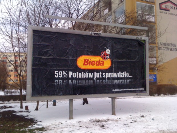 Zdjęcia zrobione na ulicy Malczewskiego 13 lutego, w chwili obecnej już jest zaklejone inną reklamą. Zdjęcia podesłał Michał Jaworski.