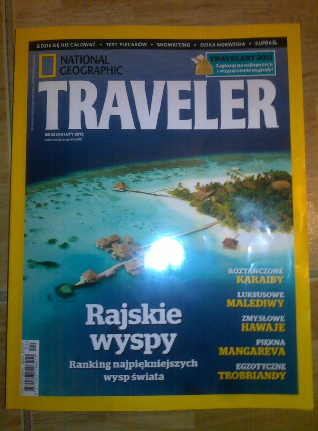 Wczoraj u znajomego przeglądałem nowe wydanie miesięcznika Traveler (luty 2012). A w nim różne, ciekawe artykuły na temat rajskich wysp (Karaiby, Malediwy, Hawaje, Mangareva, Triobrandy).