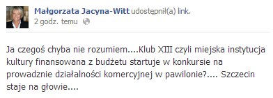 Dzierżawą pawilonu przy Alei Kwiatowej są zainteresowane 4 podmioty. Są nimi: Stowarzyszenie Make it Funky Production, Klub 13 Muz, Mas sp. z o.o. Szczecin oraz Grupa Wydawców Regionalnych Grzegorz Czarnecki, Danuta Kaczanowska i Andrzej Łazowski.