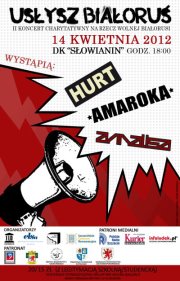 14 kwietnia 2012 (sobota) w Domu Kultury „Słowianin” odbędzie się koncert charytatywny „Solidarni z Białorusią”. Początek imprezy o godzinie 18:00.