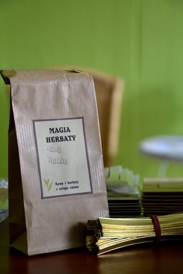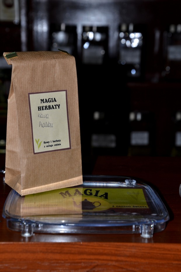 Posiada również ok. 40 kaw w tym ponad 20 aromatyzowanych między innymi bananową, kokosową, migdałową, orzechową i wiele innych – mój typ – kawa o smaku Malibu ^^. Na życzenie klienta kawa jest mielona. Chyba każdy wielbiciel gorących napojów znajdzie tam coś interesującego. W sklepie można się też zaopatrzyć w akcesoria do kawy i herbaty np. w tykwę, bombilę, filtry i zaparzacze.