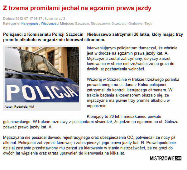 Szczecin po raz kolejny trafił na serwis mistrzowie.org Tym razem w głównej roli pewien kierowca… zresztą przeczytajcie sami.