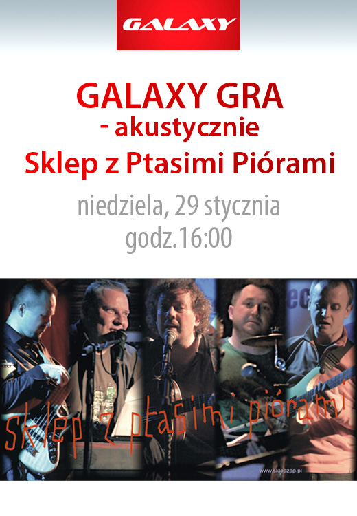 W najbliższą niedzielę, 29 stycznia o godzinie 16:00 kolejny popołudniowy koncert z cyklu „Galaxy gra”. Tym razem na scenie wystąpi Sklep z Ptasimi Piórami.