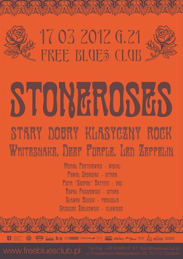 17 marca (sobota) w klubie Free Blues Club wystąpi zespół Stoneroses. Początek imprezy o 21:00, bilety kosztują 15 zł (studenci płacą dyszkę mniej). Mam dla was podwójne zaproszenie na to wydarzenie – informacje na dole wpisu.