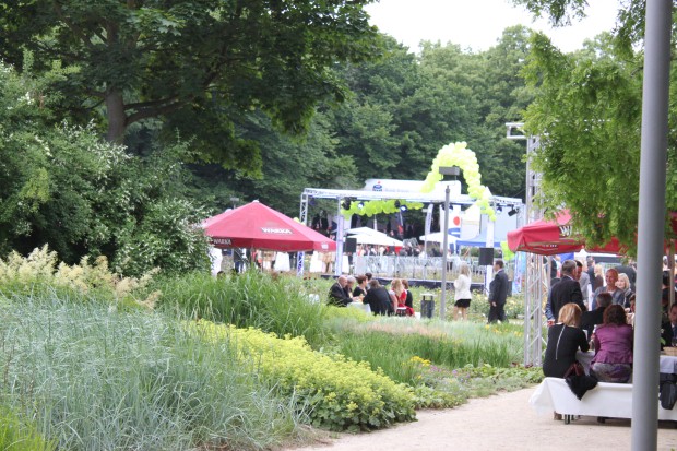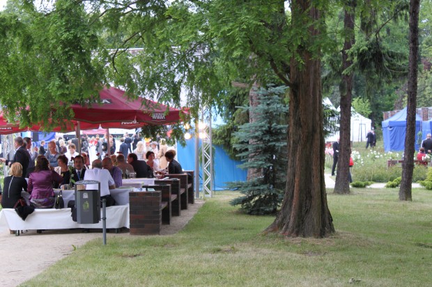 Cały teren różanki został zaanektowany na potrzeby imprezy, a ze względu na zapowiadane deszcze co chwilę można było spotkać namioty z miejscami siedzącymi i stojącymi. Catering dla gości przygotowała Restauracja Zamkowa i trzeba przyznać że posiłki były przygotowane i podane w sposób wykwintny.