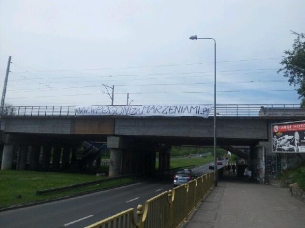 Przejeżdżając wczoraj w okolicach Turzynu moją uwagę przyciągnął transparent wiszący na wiadukcie. Ot zwykły kawałek prześcieradła z adresem strony internetowej www.wpogonizamarzeniami.pl.