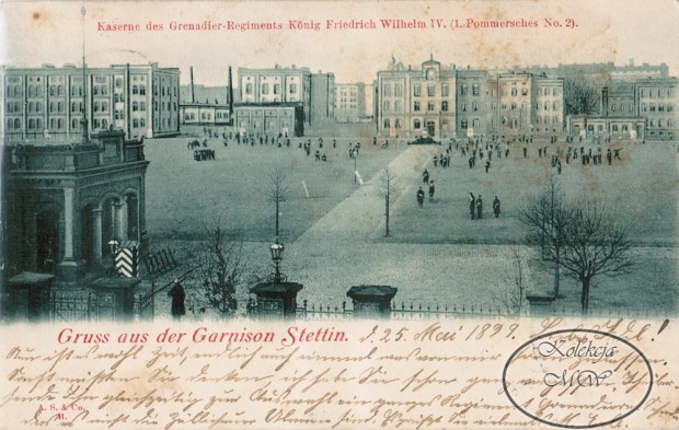 Po uzyskaniu specjalnego pozwolenia od zwierzchnictwa wojsk cesarskich w Stettinie, ruszamy na zwiedzanie koszar w rejonie obecnej ulicy Narutowicza/Kusocińskiego. Ze względu na tajemnicę wojskową, nie mogę podać dokładnych adresów.