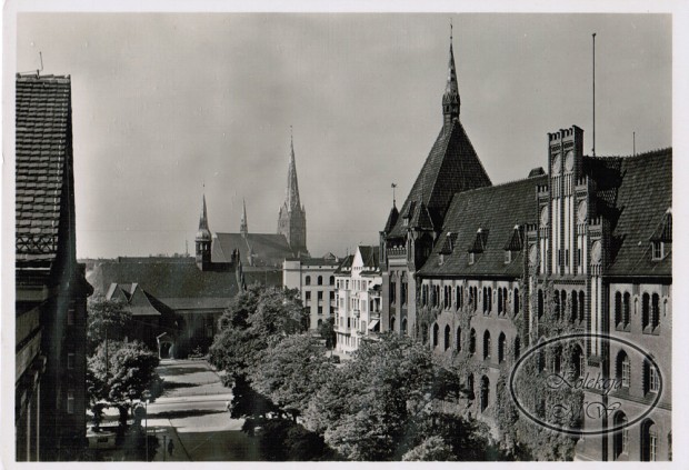 Dziś widok ukazałby nam się całkiem podobny – też z kościołem św. Piotra i Pawła, również z komendą i katedrą w oddali. Diabeł tkwi jednak w szczegółach. Uszkodzony podczas nalotu dach komendy policji przedstawia się dziś zupełnie inaczej. Brak niestety zaplecza Teatru Miejskiego oraz kwartału jasnych kamienic obok.