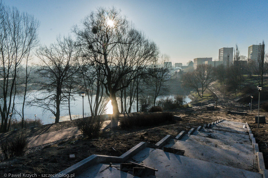 Miała ona m.in. zabezpieczać skarpy przed ewentualnym osuwaniem się dlatego podjęto decyzję o jej wymianie na tzw. gabiony (czyli siatkę z kamieniami). Zmiana była niestety na tyle istotna, że wymagała całej procedury przygotowawczej czyli stworzenia projektu, uzyskania pozwoleń itp. Na wykonanie tych elementów wykonawca ma czas do czerwca.