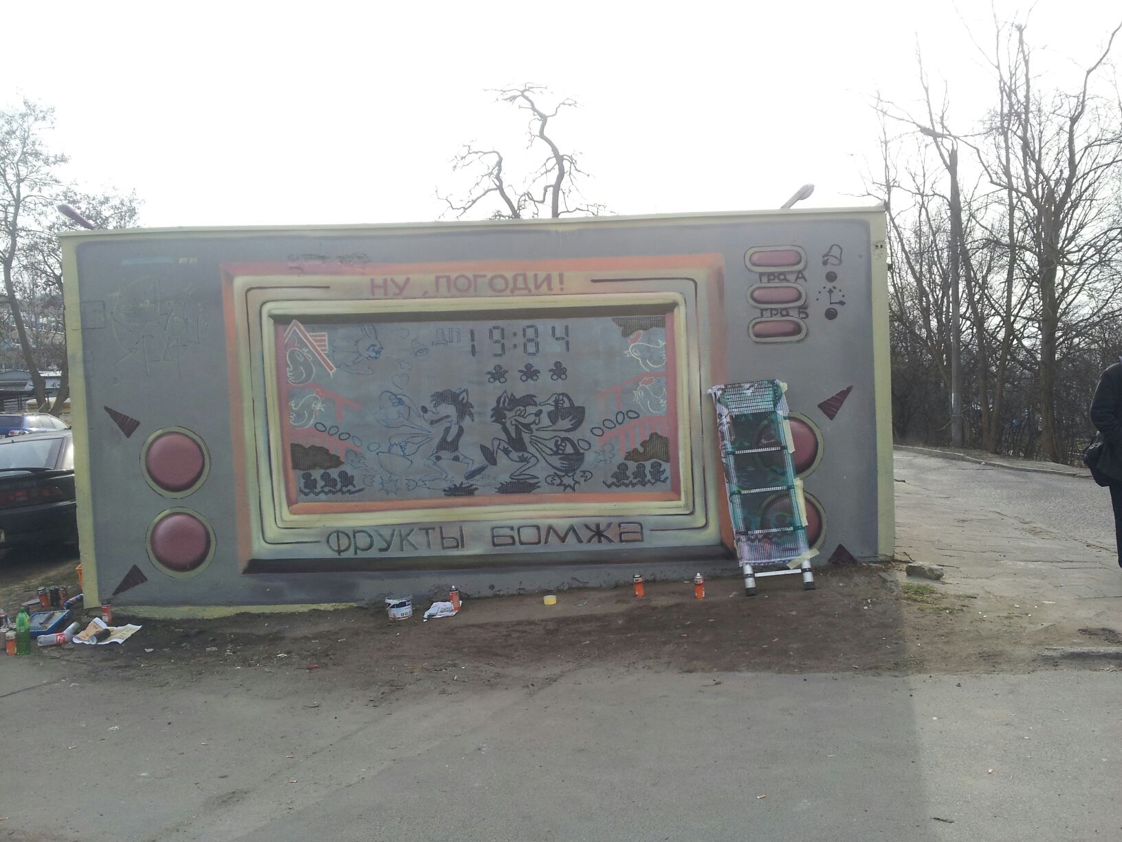 Na garażach przy ulicy Milczańskiej pojawił się nowy street art – tym razem dotyczący popularnej z czasów mojego dzieciństwa gry elektronicznej (jejku, jak to brzmi) Wilk i Zając. Gra polegała na łapaniu jajeczek, sterowało się wilkiem, a zając chciał nam spłatać figla zrzucając je coraz szybciej.