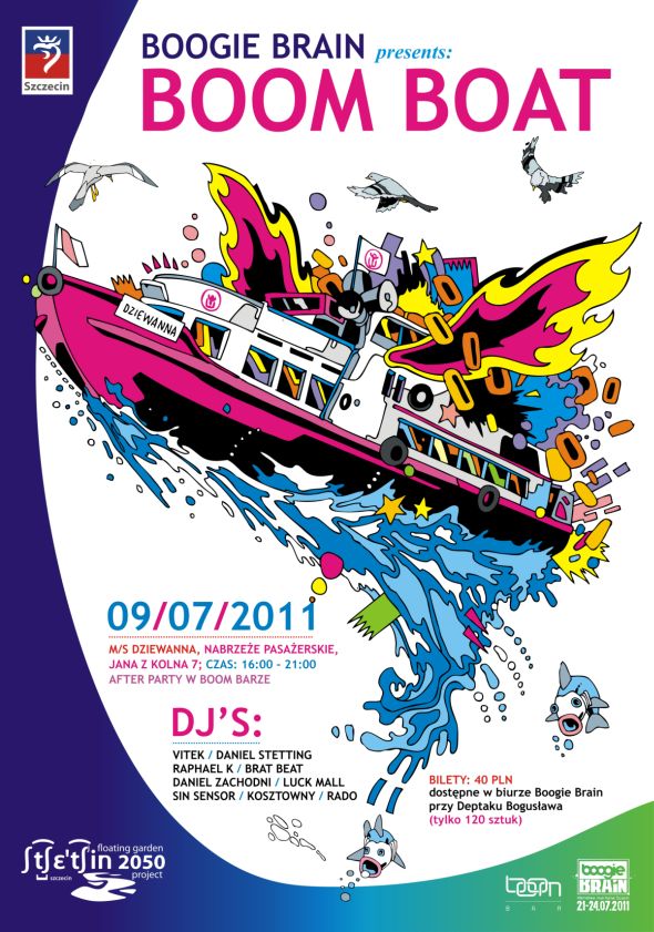 On 9 sierpnia 2011 / By Paweł Krzych9 lipca 2011 w ramach imprezy towarzyszącej czwartej edycji festiwalu Boogie Brain zabierzemy Was w rejs po urokliwych zakątkach Międzyodrza. Boom Boat to wspólna inicjatywa klubu Boom Bar ...