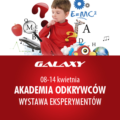 On 10 kwietnia 2013 / By Paweł KrzychW okresie od 8 do 14 kwietnia w godzinach funkcjonowania Centrum Galaxy zaprasza na kolejną zabawę edukacyjną dla dzieci i dorosłych. Tym razem Akademia Odkrywców i wystawa eksperymentów ...