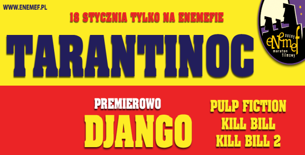 On 12 stycznia 2013 / By Paweł Krzych18 stycznia (piątek) w Multikinie w Centrum Galaxy odbędzie się kolejny maraton filmowy Enemef. Tym razem będzie to TarantiNOC. Tak sobie przypominam, że pierwszy Enemef, który odbył się ...