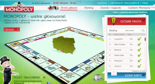On 19 lutego 2011 / By Paweł KrzychNie udało się 3 lata temu, teraz jest kolejna szansa. Polska doczekała się swojej własnej edycji gry Monopoly. Za tydzień rozpoczyna się internetowe głosowanie – głosować będzie można ...